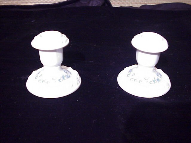Pair Rosenthal Maria Blue ROSE Garland China CANDLEHOLDERS Germany Porcelain