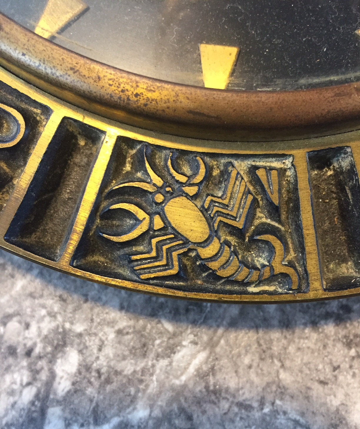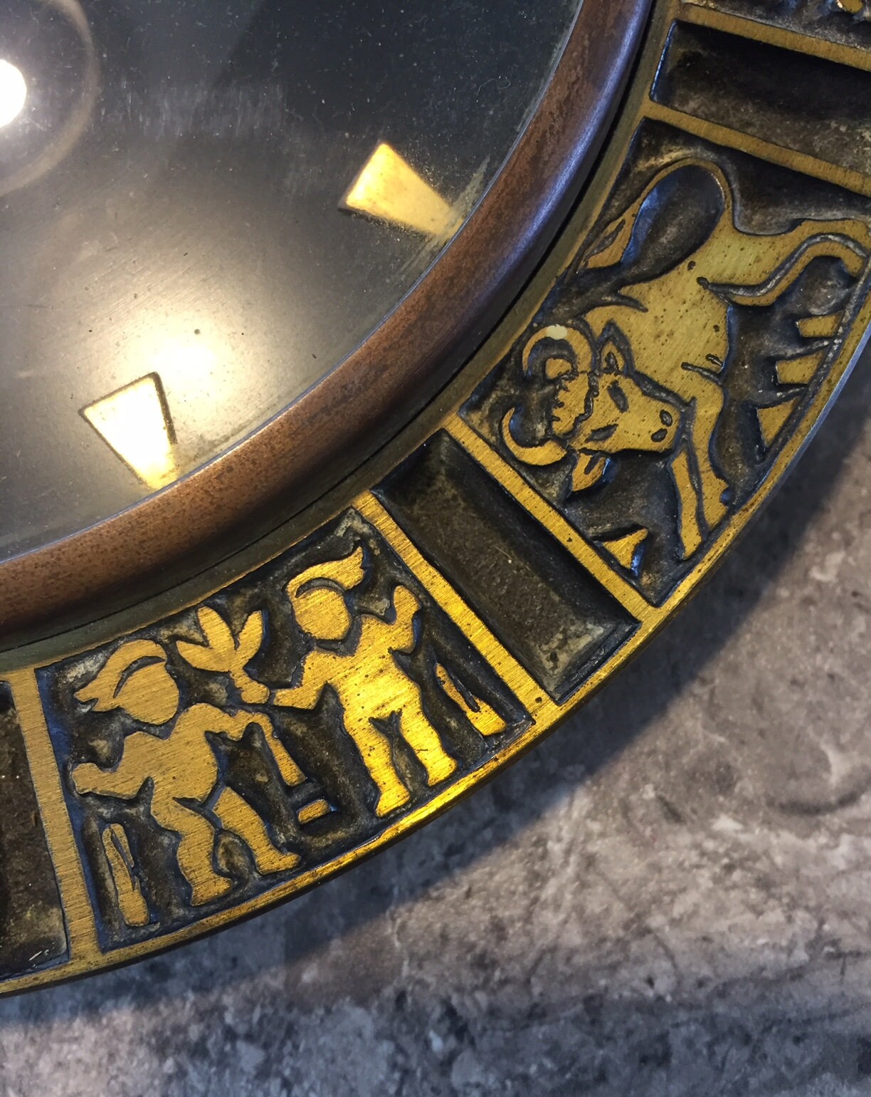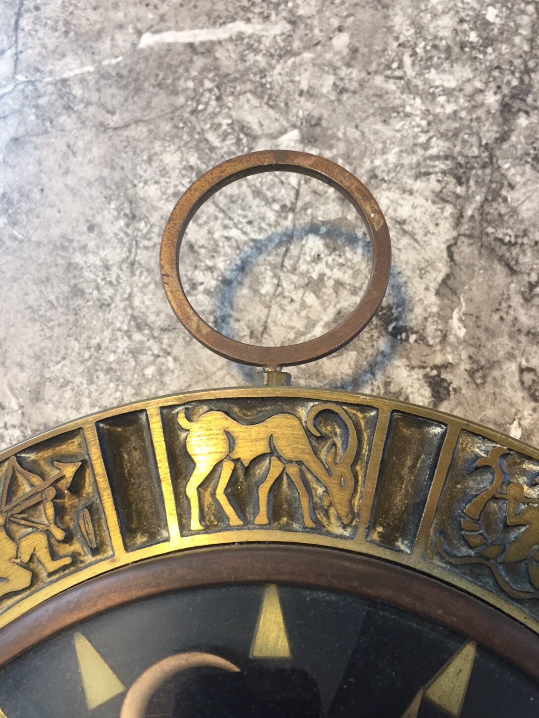 Rare Vintage ZODIAC Wall Clock Brass Jurvel Astrology Wind up WORKS 1950's
