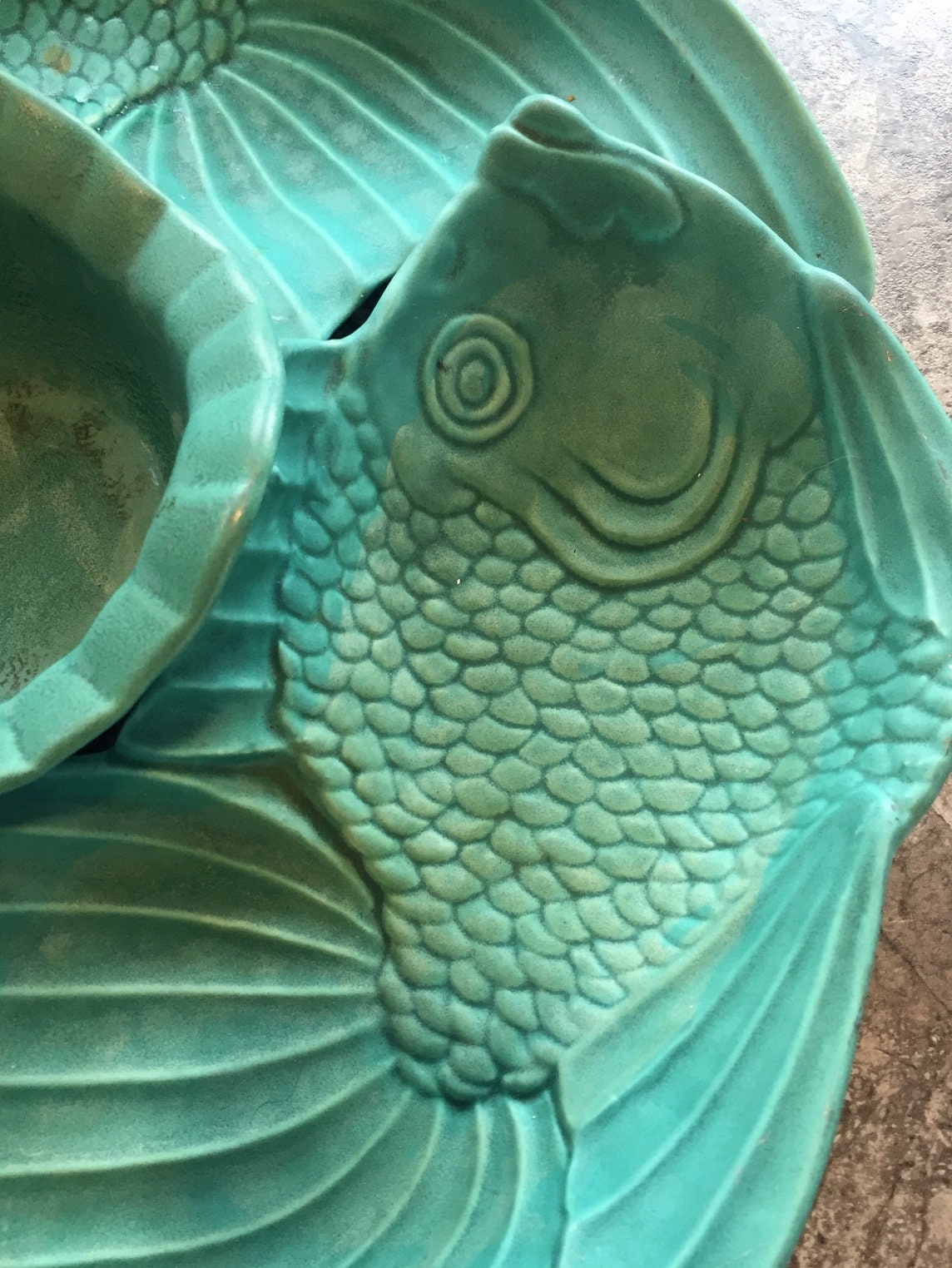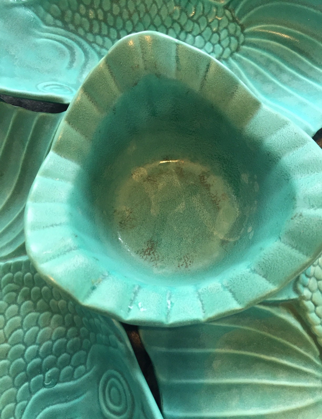 California Art Pottery 4 pc KOI Fish Serving Tray Bowl 1950's Mid-Century Modern Green